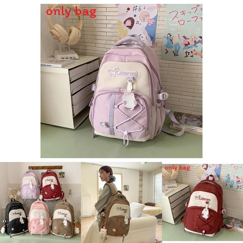 Модный рюкзак для студентов с цветными блоками, рисунком кота и подвеской для повседневного использования