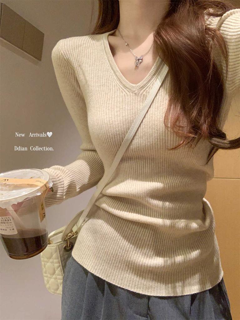 Женский вязаный свитер с текстурированным воротником, весенний, осенний и зимний, облегающий и тонкий, для ношения под низ, топ-свитер однотонный