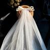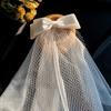 Марлевая Свадебная Фата Многослойная Фата с Жемчугом и Бантом Романтическая Белая Свадебная Фата из Тюля Свадебное Платье