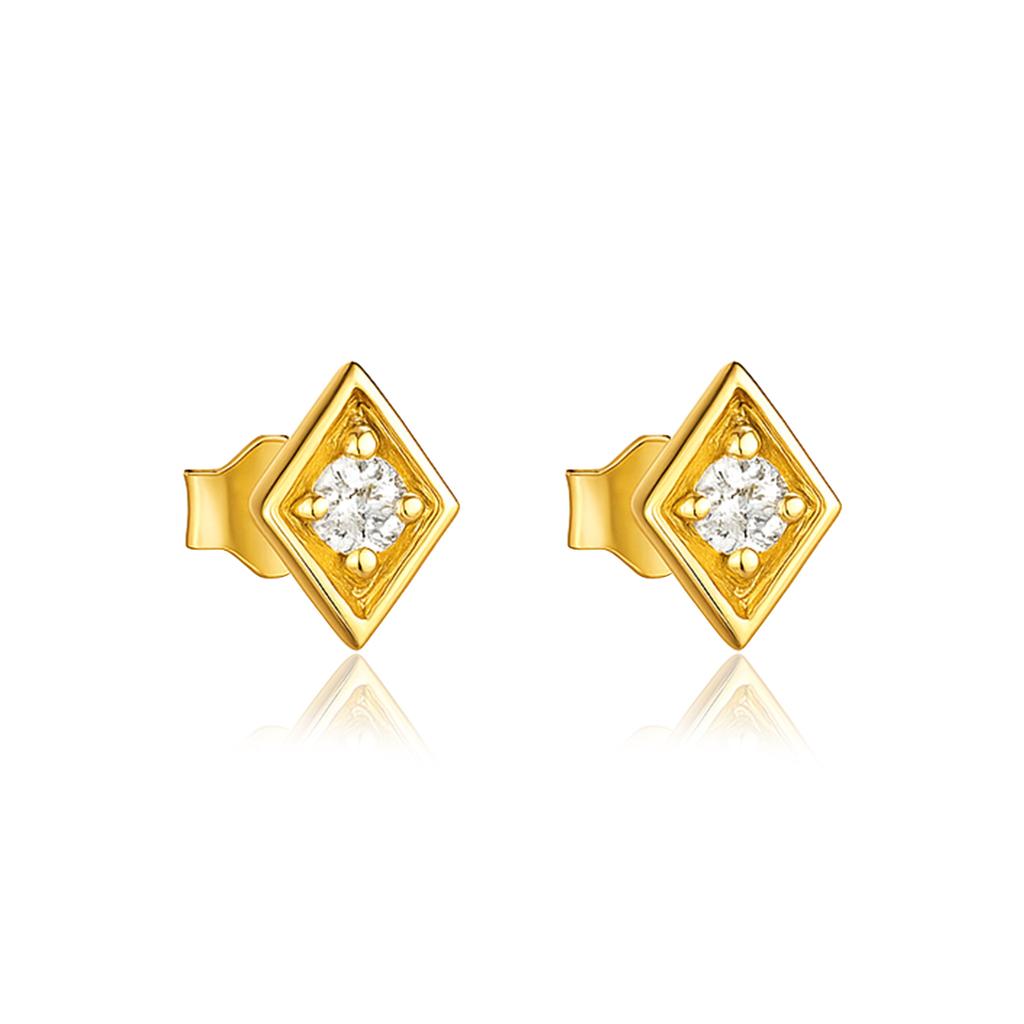 Minimalist diamond-shape CZ stud earrings in gold-plated 925 sterling silver -a timeless design for everyday sophistication.