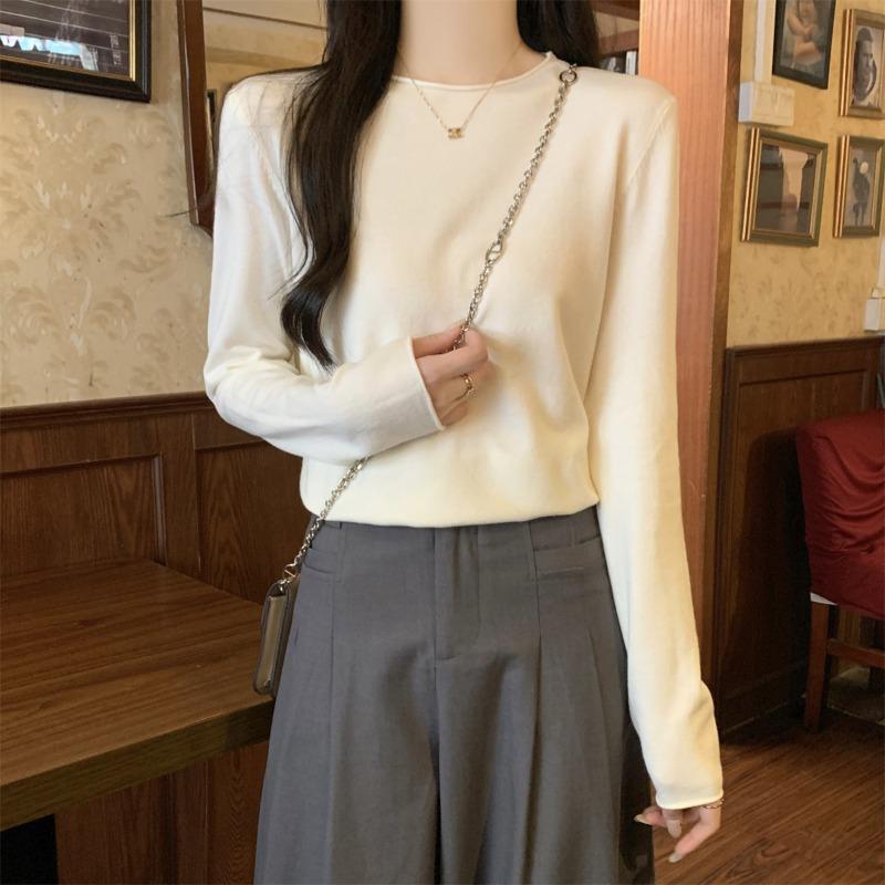 Свитер с плечами женский мягкий восковой внутренний вязаный свитер осень и зима повседневный простой базовый топ с длинными рукавами — купить товар онлайн с бесплатной доставкой по всему миру!