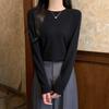 Свитер с плечами женский мягкий восковой внутренний вязаный свитер осень и зима повседневный простой базовый топ с длинными рукавами