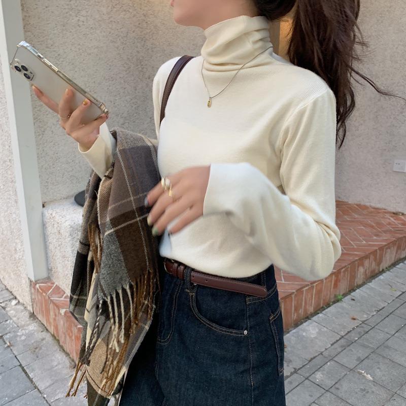 Высококачественный однотонный вязаный свитер для женского осенне-зимнего сезона, прилегающий, внутренний, с длинным рукавом, с высоким воротом, многослойный свитер, базовый топ