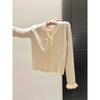 Нежный кружевной воротник, вязаный топ, женский осенне-зимний, с темпераментом, мягкий восковой пуловер на пуговицах