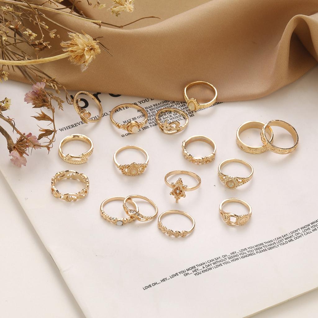 Модный женский набор из 16 колец - Женское кольцо Металлическое кольцо Глянцевое кольцо Металлическое кольцо Праздничный подарок