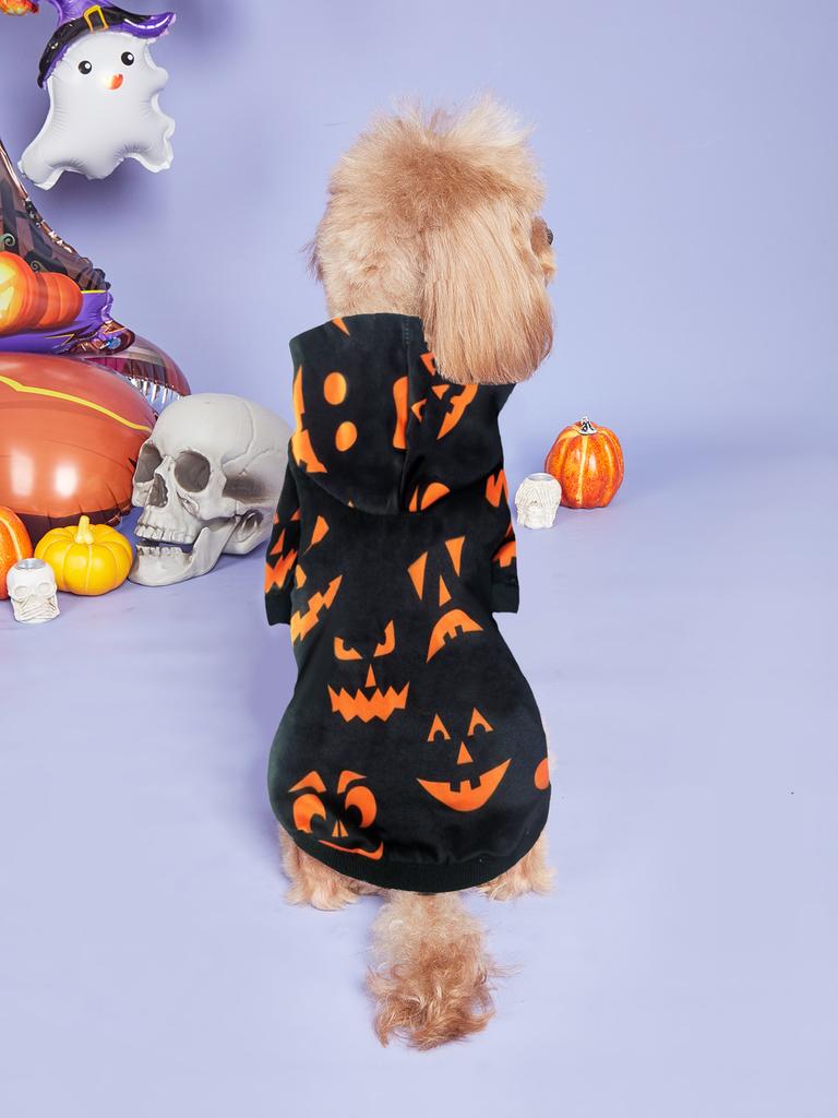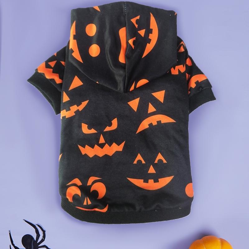 Черный костюм для собаки на Хэллоуин с капюшоном, Теплая зимняя толстовка для питомца с принтом тыквы, Праздничный наряд для маленькой собаки, Одежда для Хэллоуинской вечеринки