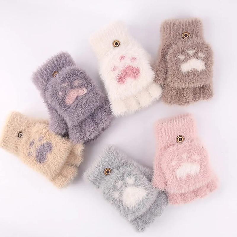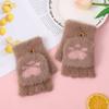 Корейские мультяшные модные перчатки-флип с кошачьими царапками для женщин, толстые бархатные теплые перчатки для повседневной носки, офиса, учебы, для письма пальцами