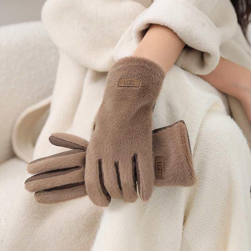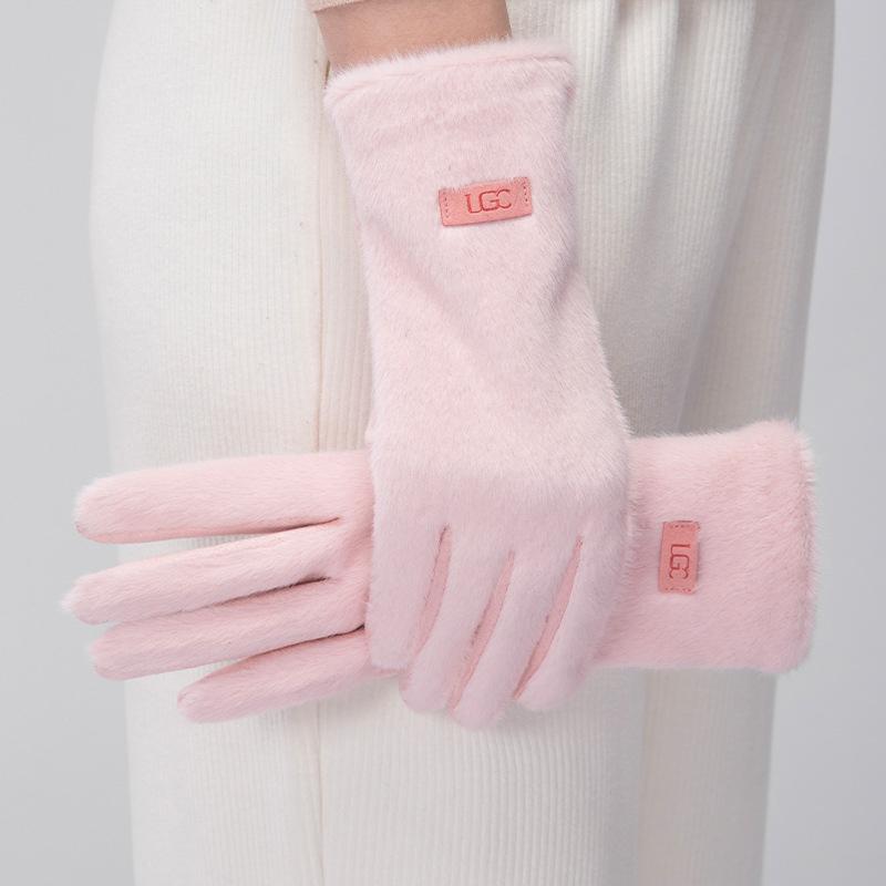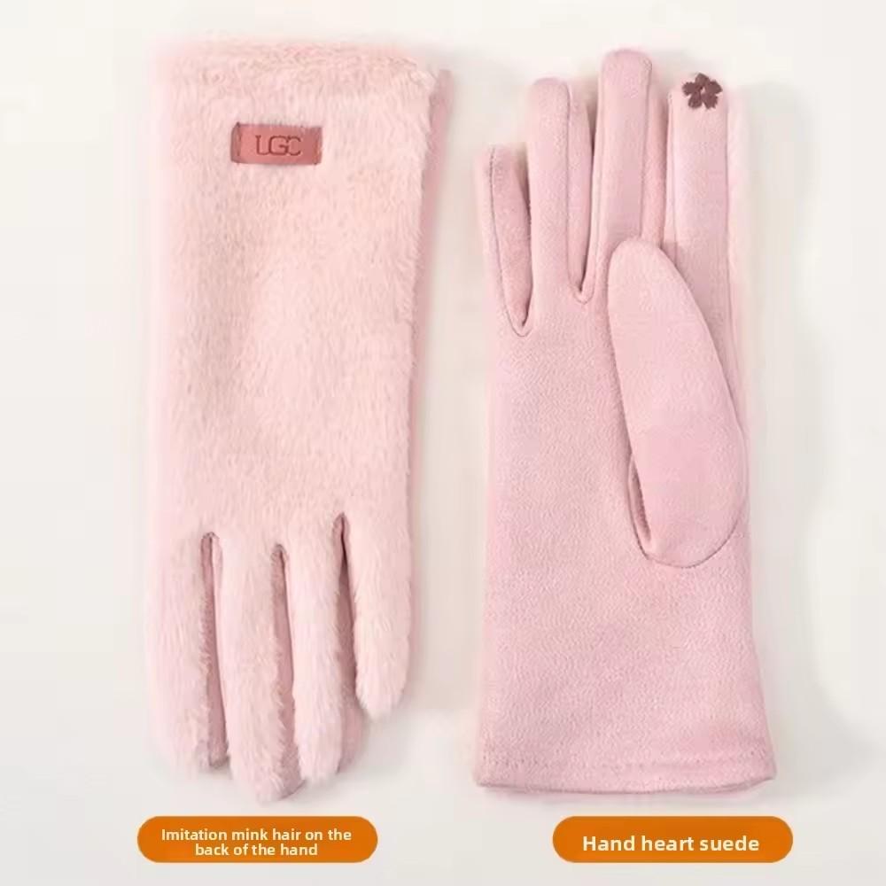 Корейские Элегантные Замшевые Перчатки для Женщин из Искусственного Меха Норки Теплые и Приятные к Коже Перчатки с Сенсорным Экраном Милые и Мягкие Перчатки для Поездок