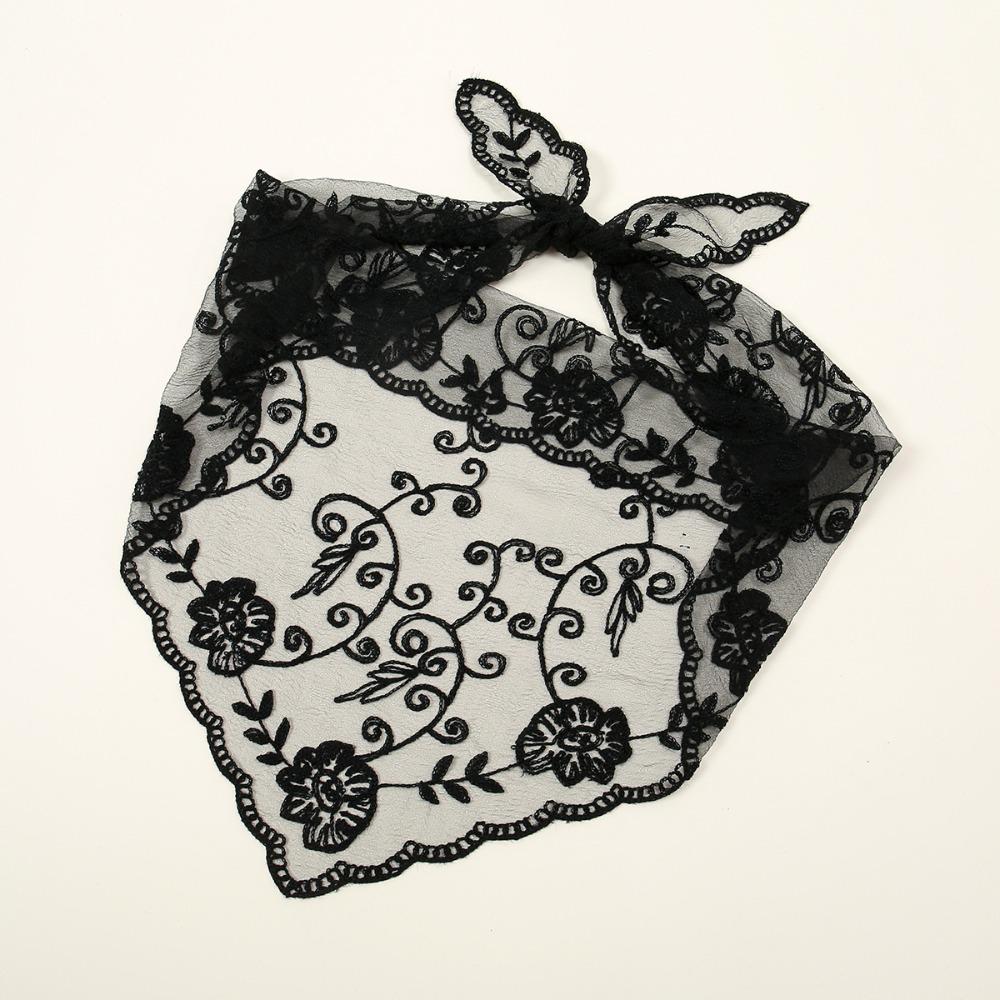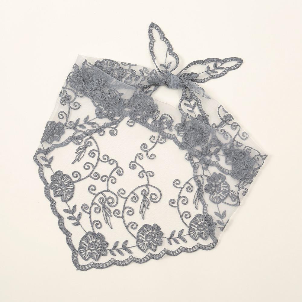 Элегантный кружевной шарф с вышивкой, ажурный, фуляр, бандана, однотонный треугольный шарф, тонкий винтажный платок для волос, женский