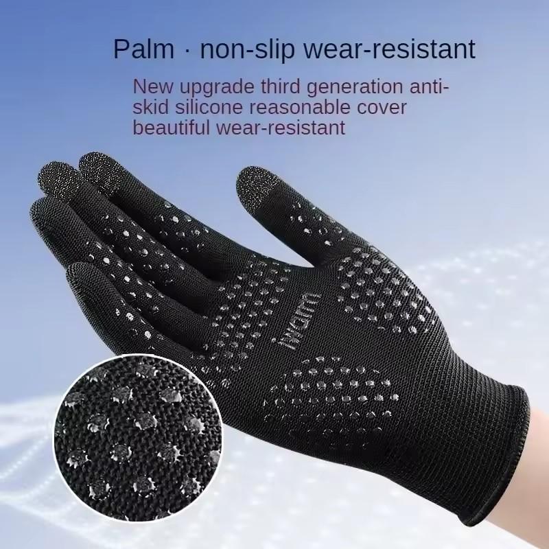 Summer Thin Breathable Gloves Spun Inner Silicone Anti Slip Suitable for Outdoor Sports Running Fitness Knitting Finger Gloves