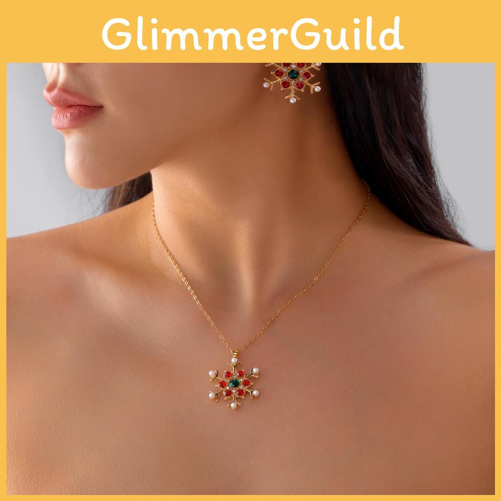 Зимний набор ожерелья и серег «Снежинка» из сплава для праздничных случаев