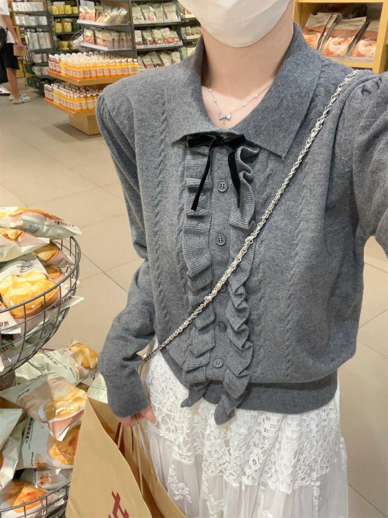 Уменьшающий возраст воротник-поло с грибным краем вязаный свитер осень и зима с длинным рукавом дизайн плеча спереди внутренняя топ-дизайн базовая рубашка