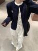 Темно-синий белый свитер с круглым вырезом, переплетением и вышивкой для женской весны и осени, свитер-жакет с небольшим дизайном