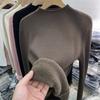 Утепленный теплый флисовый вязаный свитер с полувысоким воротником, женская весенняя мягкая восковая базовая рубашка, однотонный топ