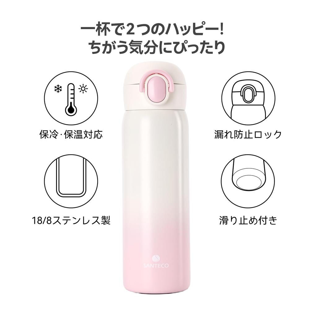 SANTECO Вакуумная изоляция, портативная кружка, 480 мл, соломка, прямое питье, 2 способа, легкая, открытие одним касанием, бутылка из нержавеющей стали, сохраняет напитки горячими или холодными в течение 12 часов