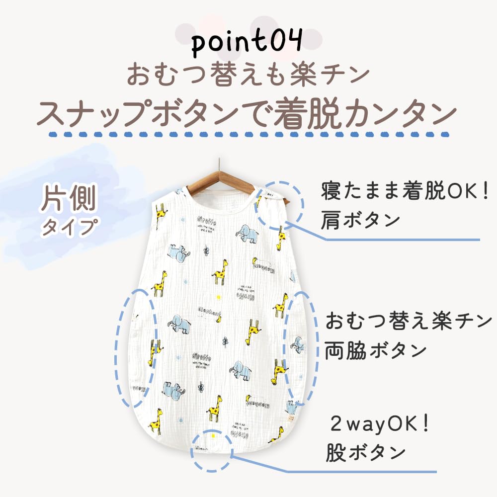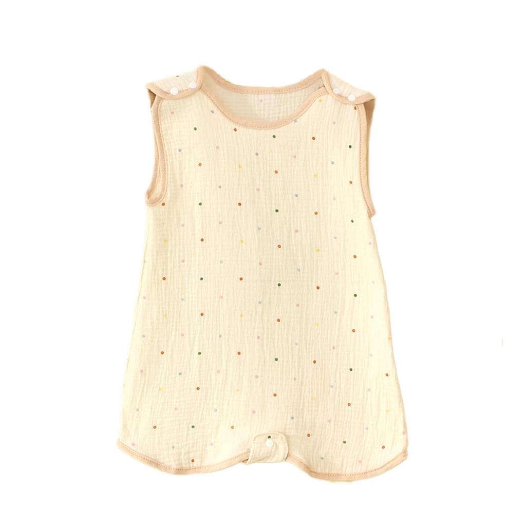[Марлевый комбинезон для комфортного сна вашего малыша] Идеально подходит для предотвращения переохлаждения и ночного потоотделения. «Летний марлевый комбинезон» изготовлен из мягкой, воздушной марли, что делает его идеальной одеждой для сна для младенцев, которые много переворачиваются и сбрасывают одеяла.. Передняя часть состоит из четырех слоев марли, а задняя — из двух, что делает ее легкой, но идеально разработанной для поддержания температуры тела.. Он также обладает отличной впитываемостью влаги и быстросохнущими свойствами, обеспечивая комфорт вашему малышу и предотвращая липкость даже в жаркие летние месяцы.. Его исключительная текстура нежна для чувствительной кожи вашего ребенка, что делает его идеальным для дневного сна и ночного отдыха, а также для регулирования температуры тела в кондиционируемых помещениях.. Изготовлен из 100% хлопка, он дышащий и эластичный, что делает его отличной пижамой, которую вы захотите носить каждый день.