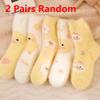 Женские носки до середины икры с маленьким желтым утенком, осенне-зимние, милые, кавайные, пушистые из норкового велюра, для дома, для пола, кораллового велюра, для сна