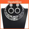 Мода Однотонный Полый Дизайн Женский Металлический Набор Ожерелье-Воротник Круглые Серьги Для Подарка И Путешествий