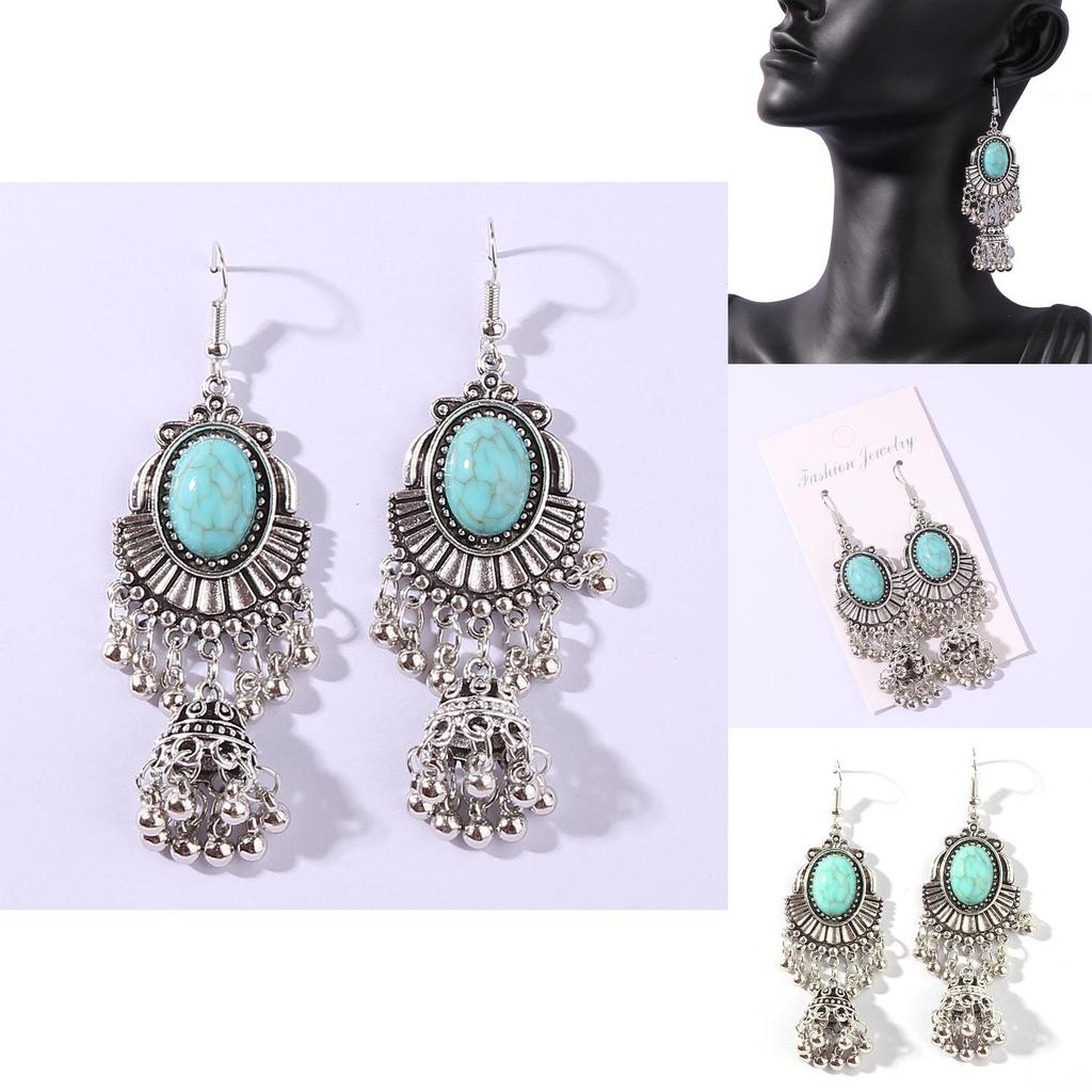 Ethnic Style Alloy Dangle Earrings Featuring Peacock Blue Finish For Ladies