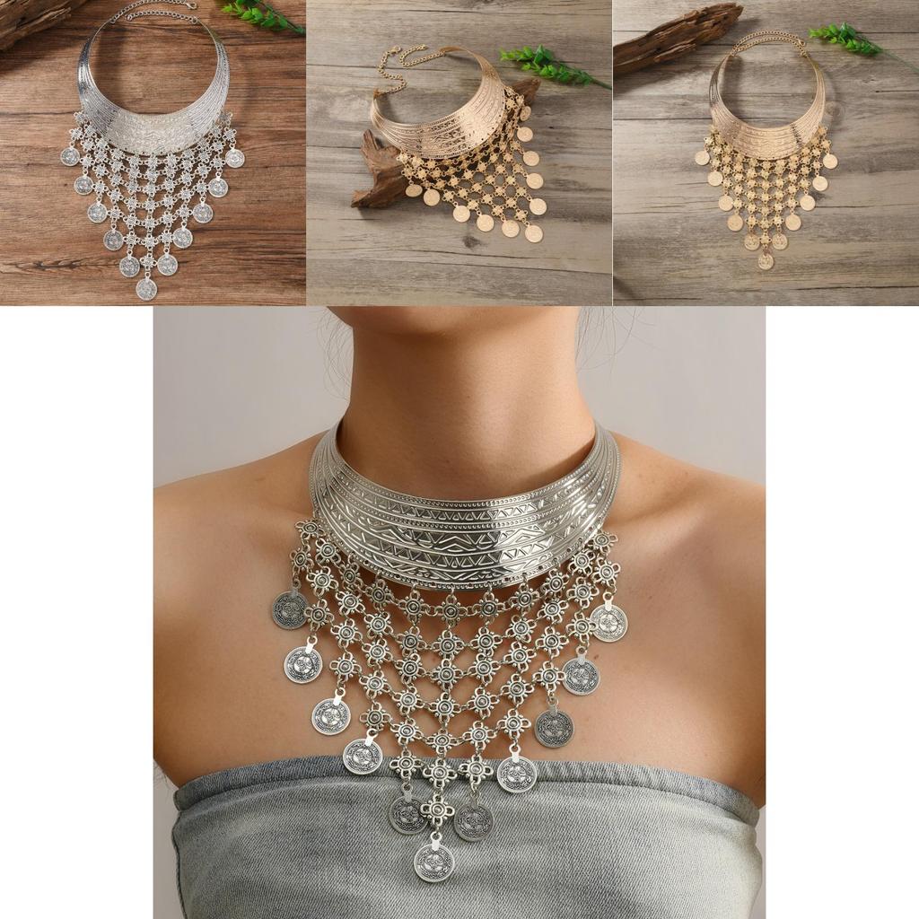 Модное этническое многослойное ожерелье-чокер из металла с кисточками для женщин в этническом стиле