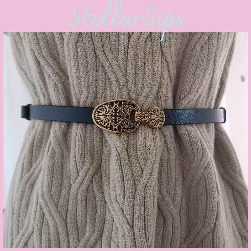 Кожаный ремень для женщин тонкий прочный с пряжкой из сплава для повседневной носки