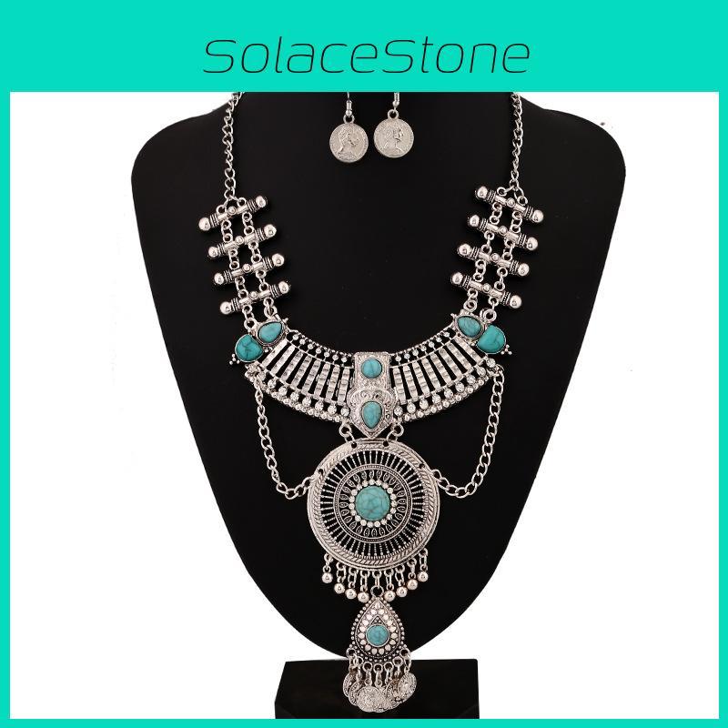 Этнический стиль Имитация драгоценного камня Декорация Женское ожерелье и серьги Набор для любителей винтажной бижутерии