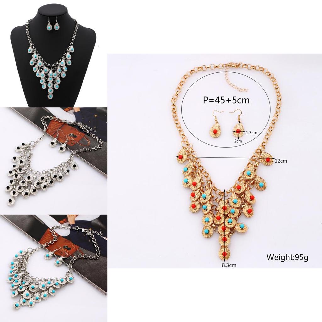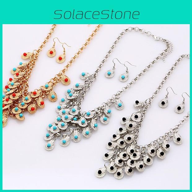 Этнический стиль многослойный дизайн имитация драгоценных камней украшение женское ожерелье для повседневной носки