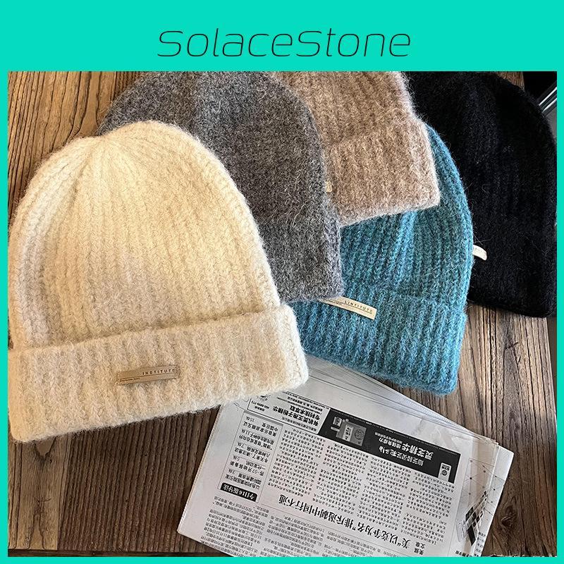 Теплая вязаная шапка для женщин однотонного дизайна для зимнего повседневного тепла