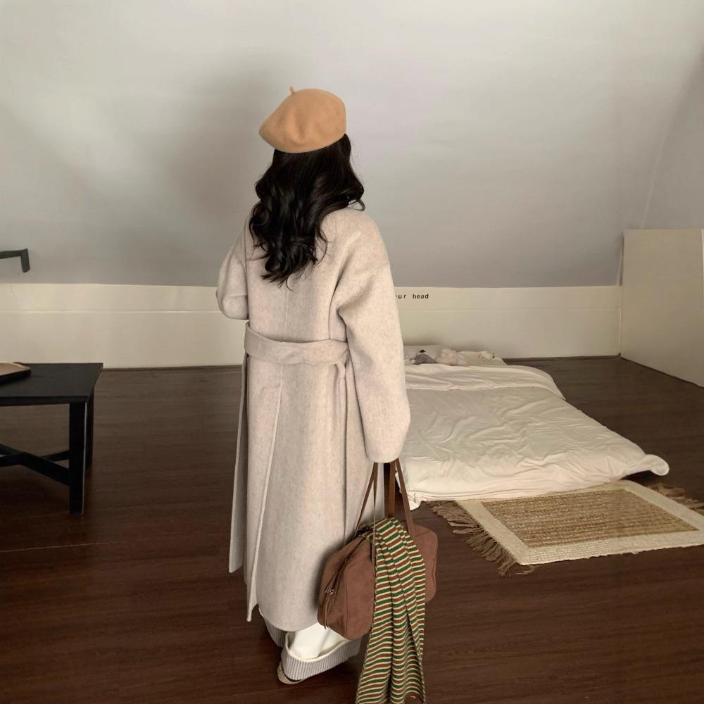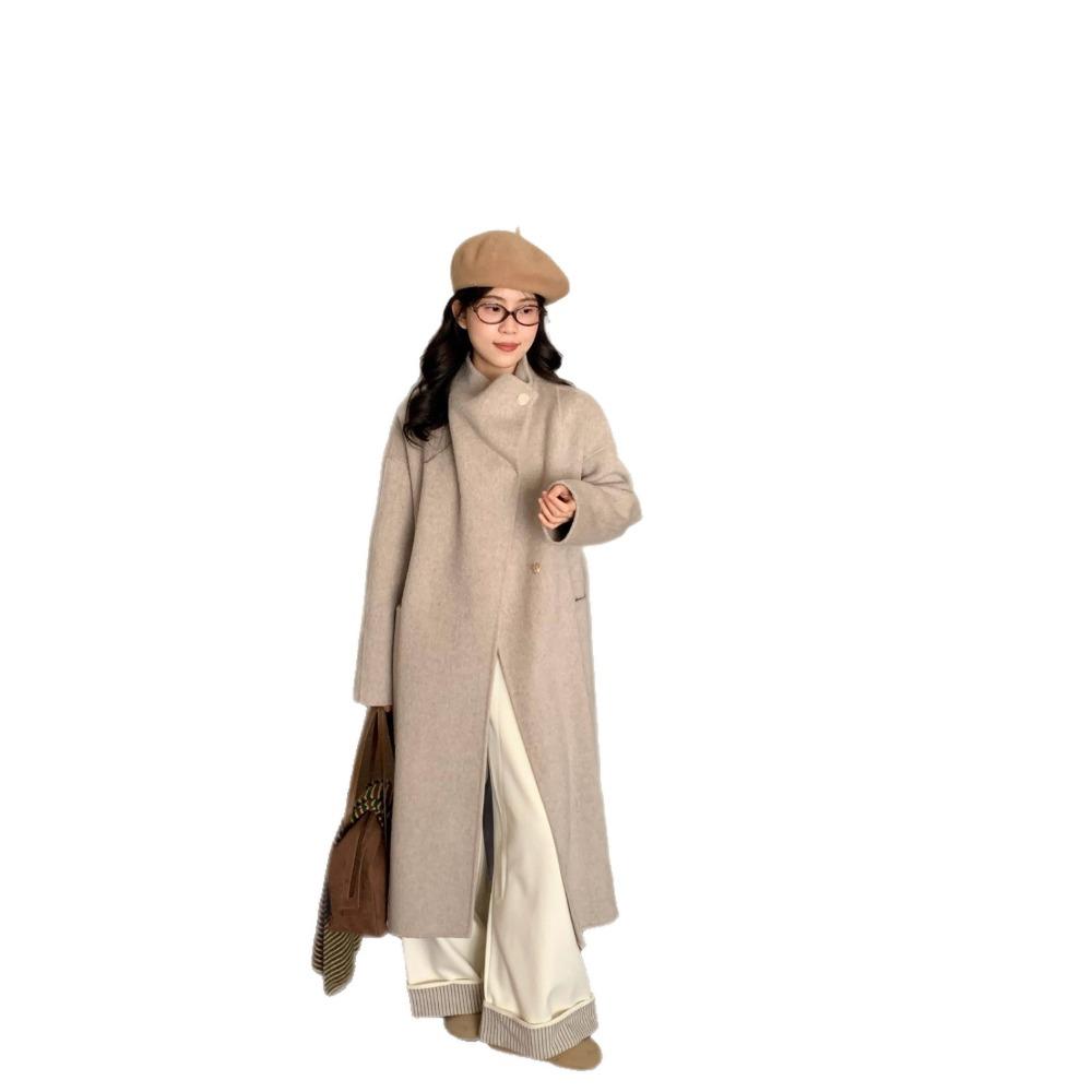 Осенне-зимнее высококачественное двустороннее кашемировое пальто женское длинное с воротником-стойкой на пуговицах, высококлассное шерстяное пальто свободного кроя с темпераментом