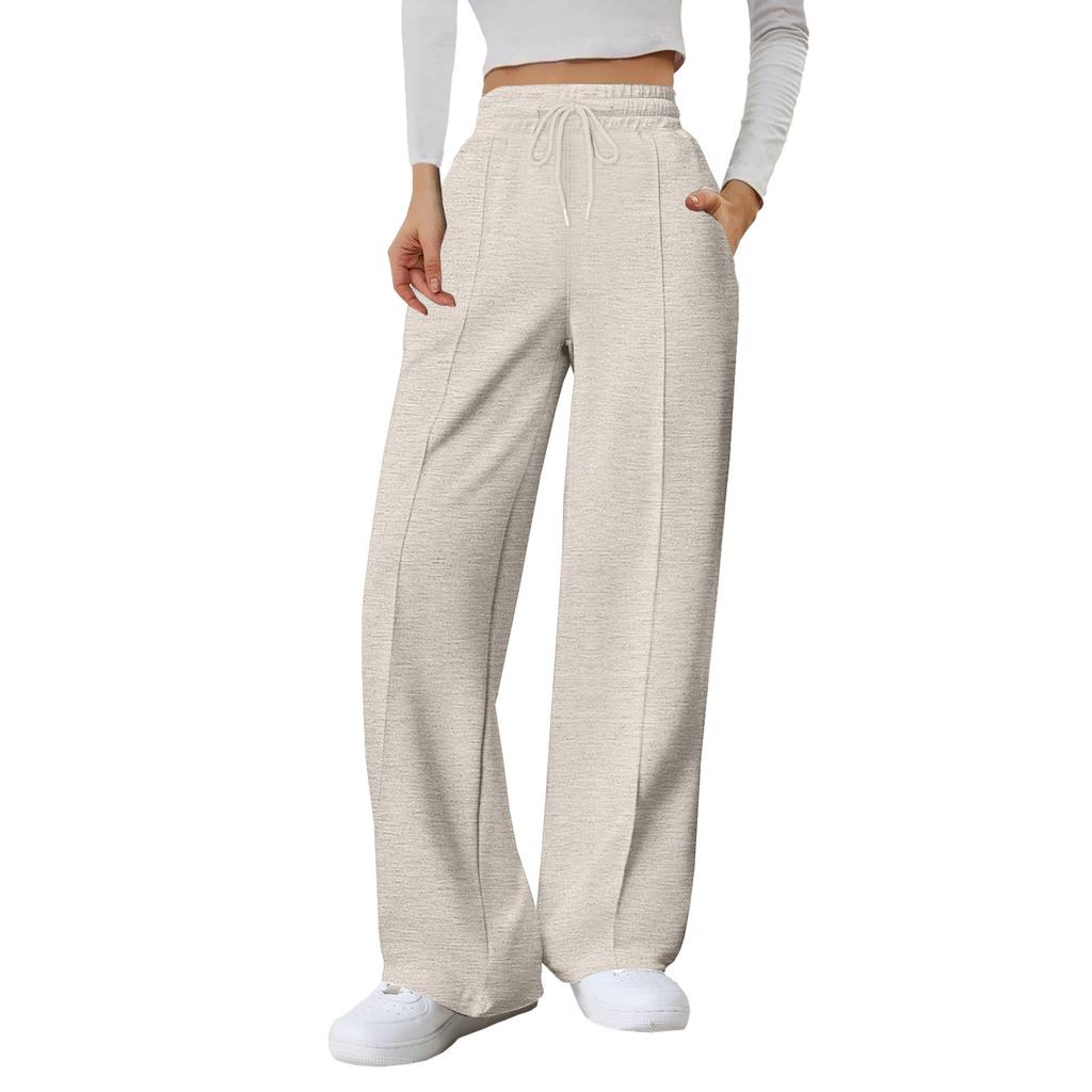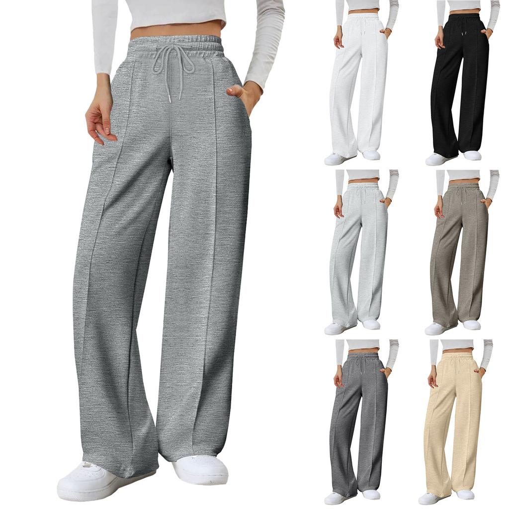 Женские модные однотонные повседневные свободные брюки с высокой талией и широкими штанинами