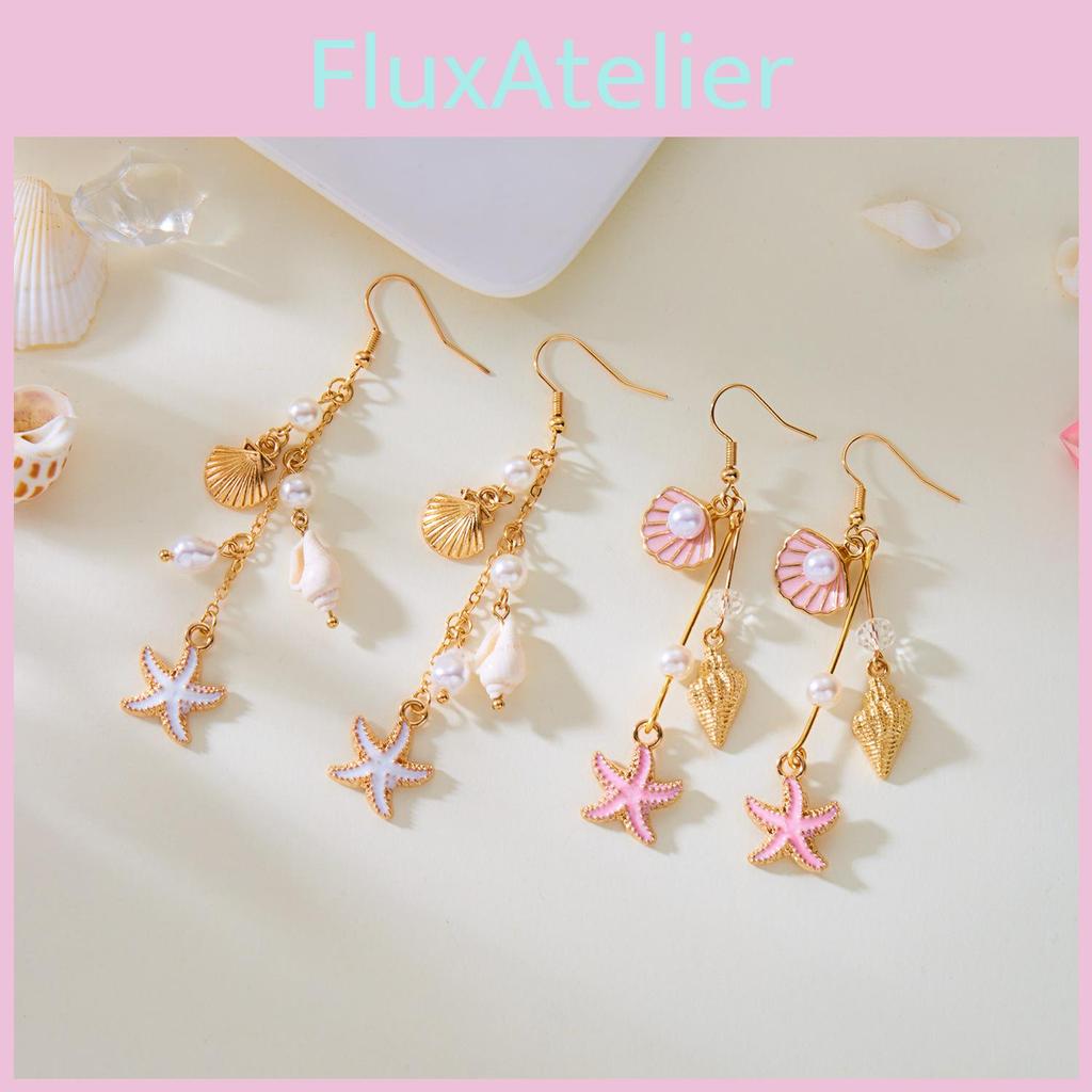 Серьги из натуральной ракушки и сплава с гальваническим покрытием для модных аксессуаров для пляжной вечеринки