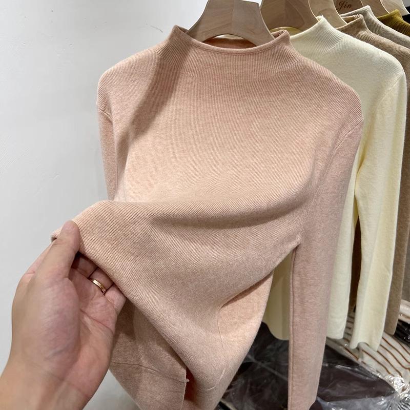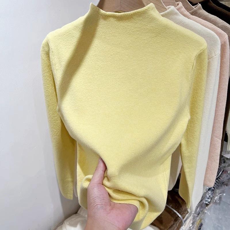 Маленький воротник-стойка, омолаживающий вязаный топ, женский весенний мягкий восковой внутренний базовый свитер, мягкий восковой цветочно-розовый свитер