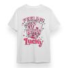 Feeling Lucky White T-Shirt With Poker Cards And Dice Print For Casual Wear