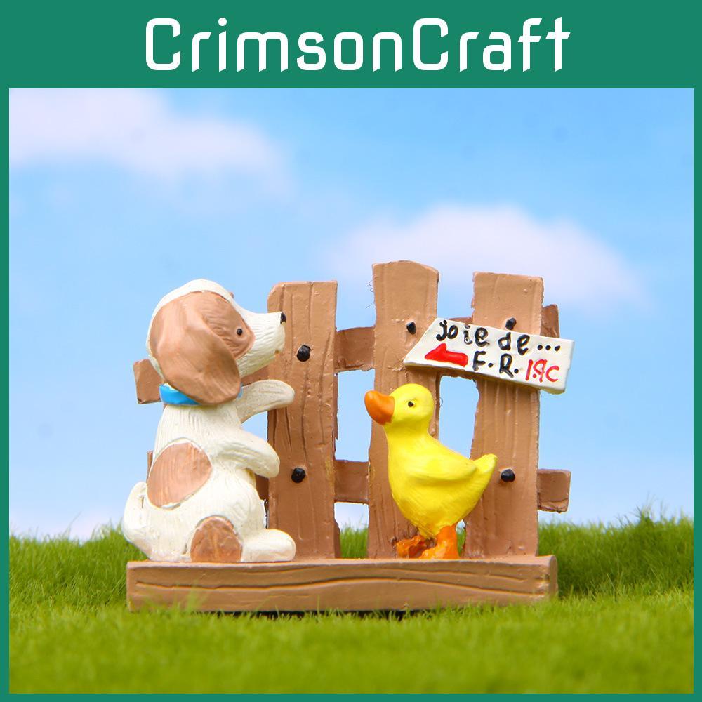 Cute Cartoon Fence Duck Dog Mini Model Ornament For Succulents And Mini Landscape Decor