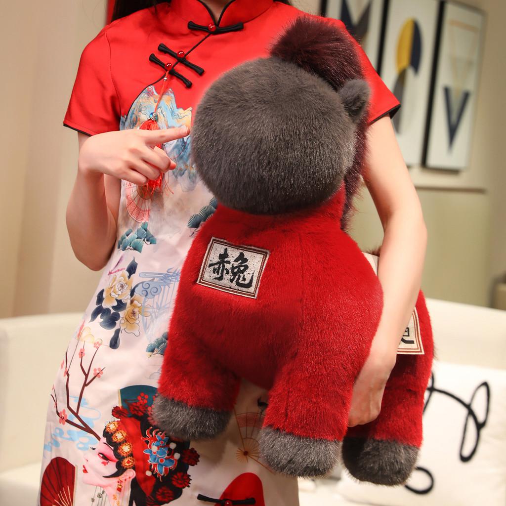 Креативная плюшевая кукла-лошадь серого и красного цвета, детская игрушка, подарок на год лошади и коллекционный декор
