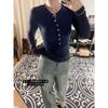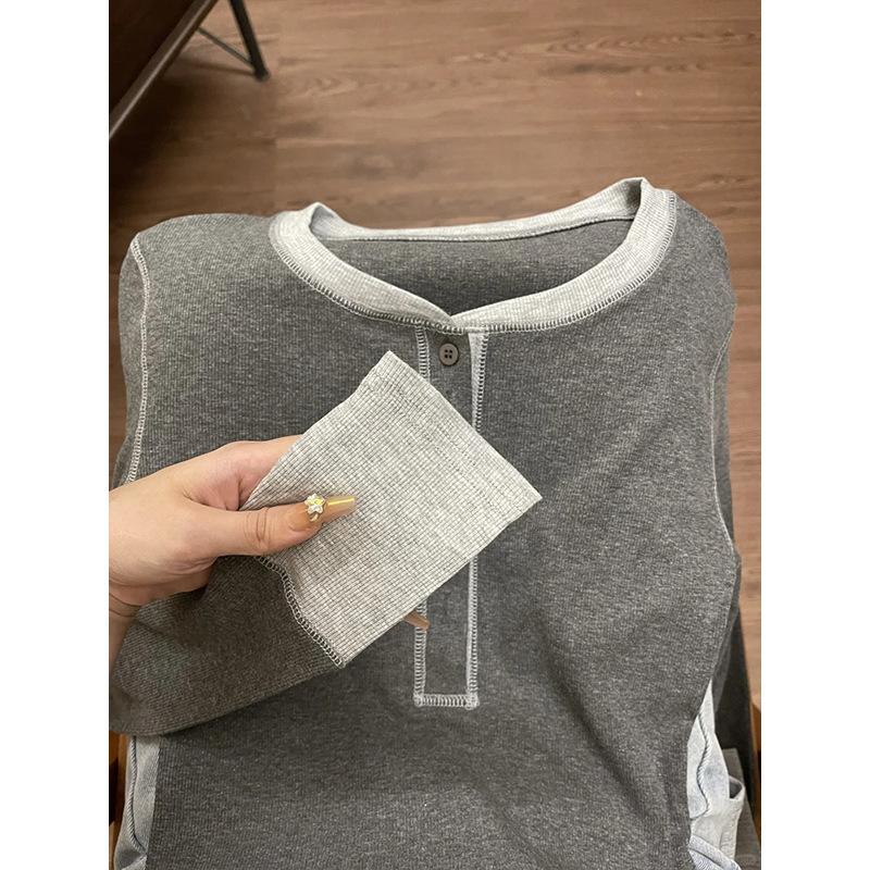 Премиальная контрастная цветная пуговичная передняя плечевая вязаная базовая рубашка женская осенне-зимняя облегающая и тонкая Spice girl с длинным рукавом внутренняя майка