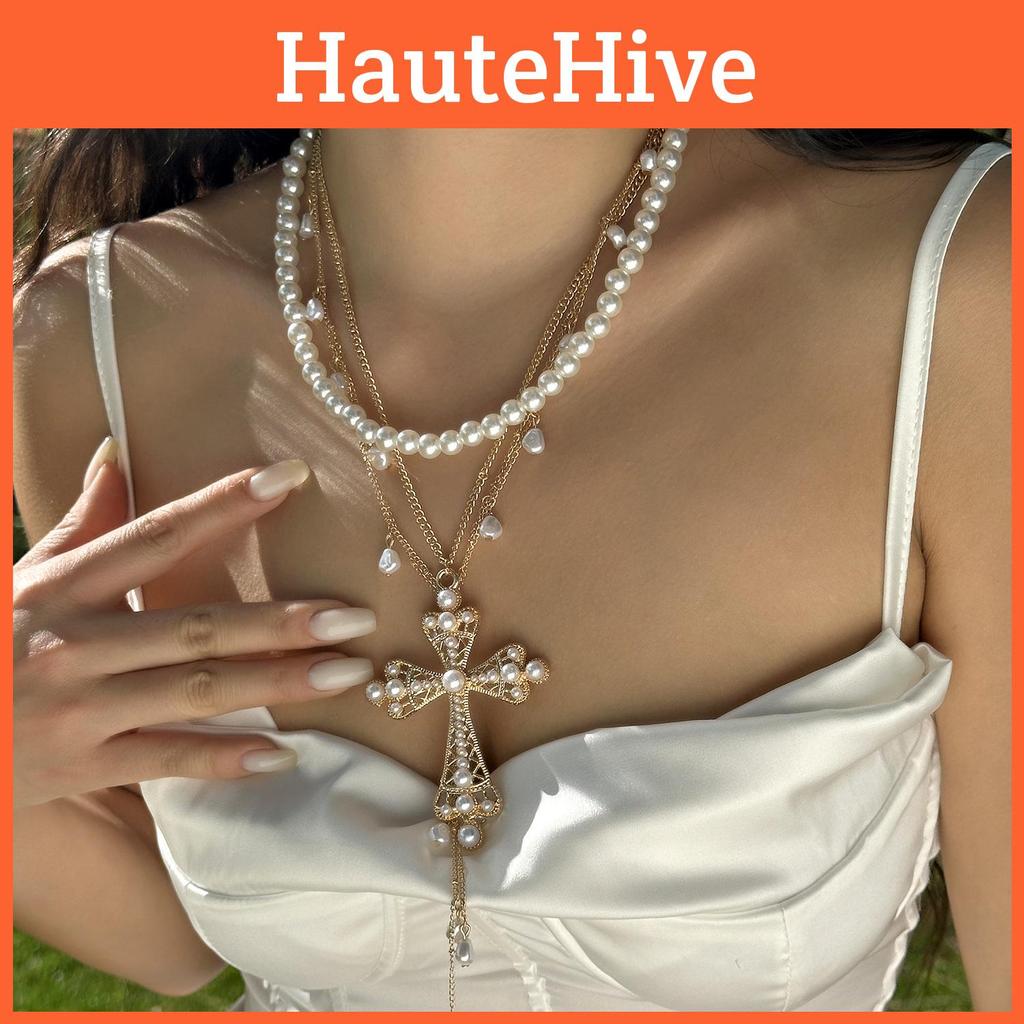 Это ожерелье-крест в винтажном стиле имеет изготовленный вручную цветочный дизайн с подвеской из сплава и акцентами из имитации жемчуга. Оно сочетает в себе прочную цепочку золотистого тона с многослойным стилем для универсального ношения.. Идеально для формальных мероприятий или повседневной моды, хорошо сочетается с богемными или ретро-нарядами. Протирайте мягкой тканью для поддержания блеска.