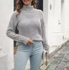 Женский пуловер с высоким воротником, вязаный ромбами: Европейский и американский стиль, свободный крой, однотонный