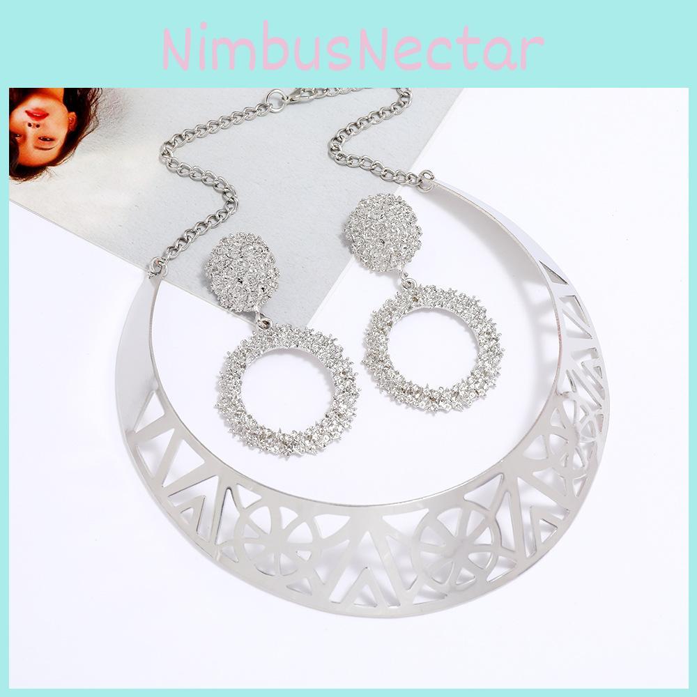 Fashion Solid Color Hollow Design Women Metal Necklace Collar Round Earring Set For Travel And Employee Gifts
