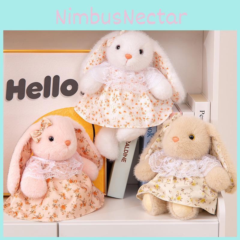 Очаровательная плюшевая игрушка-кролик в платье с цветком Для детей Подарок Персонажи в комплекте)