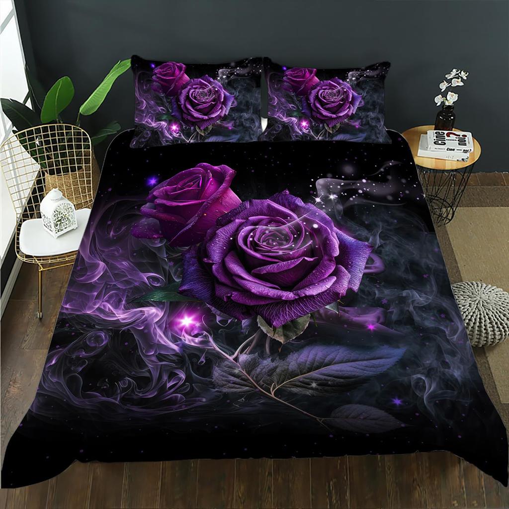 Комплект постельного белья Purple Rose из трех предметов с романтическим цветочным узором на День святого Валентина в подарок паре