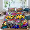 Rock Music Graffiti Duvet Set, Hip Hop Art Bedroom Supplies Quilt Set Three-Piece Set — купить товар онлайн с бесплатной доставкой по всему миру!