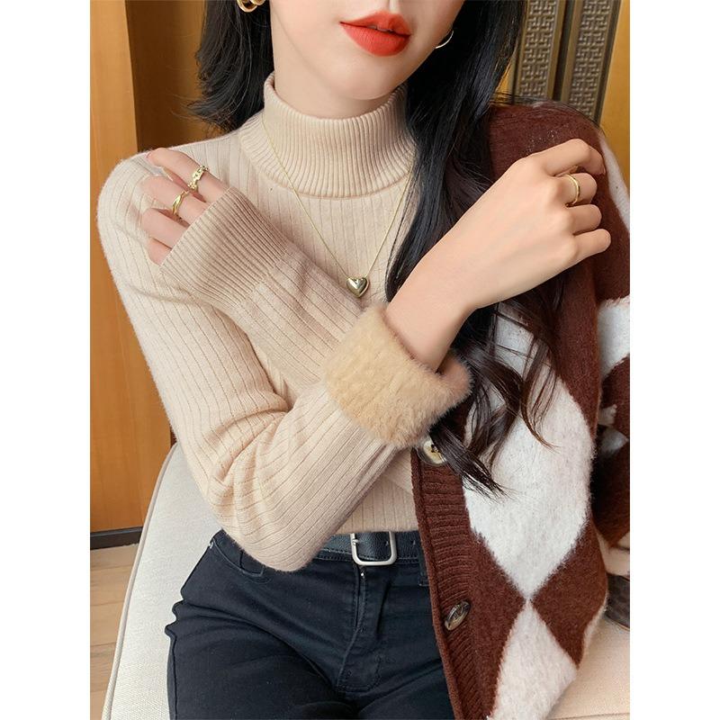 Топ-водолазка в рубчик, интегрированный, из искусственного норкового бархата, женский осенне-зимний прилегающий внутренний теплый вязаный свитер — купить товар онлайн с бесплатной доставкой по всему миру!