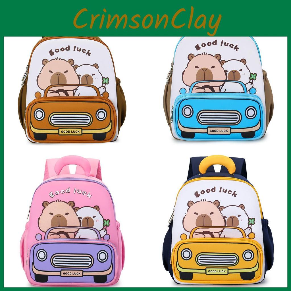 Kids Dual Shoulder School Bag With Capybara Pattern And Lightweight Nylon Fabric