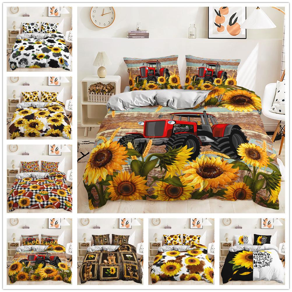 Three-Piece Sunflower Quilt Cover Digital Printing Kit Bedding