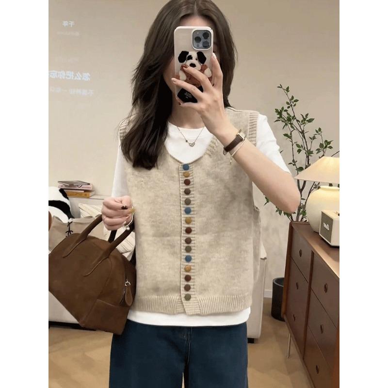 Премиальный однобортный вязаный жилет женский весенне-осенний и зимний ретро свободный жилет топ без рукавов модный универсальный жилет