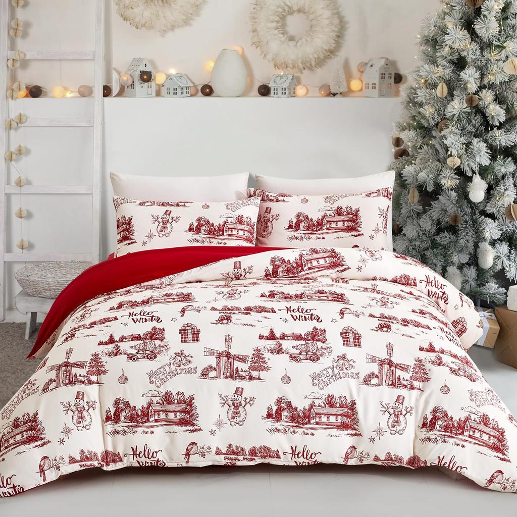 Рождественский день Крупный принт Пододеяльник Мягкий комплект постельного белья из трех предметов