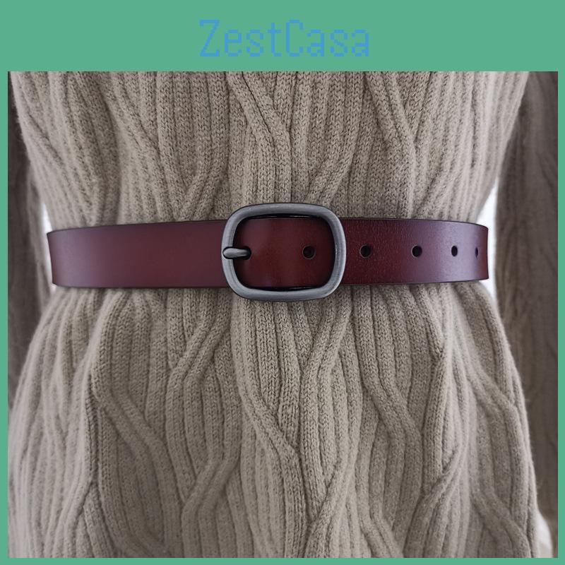 Color Solid Girl Fashionable Pure Leather Belt D Shaped Buckle Daily Use Casual