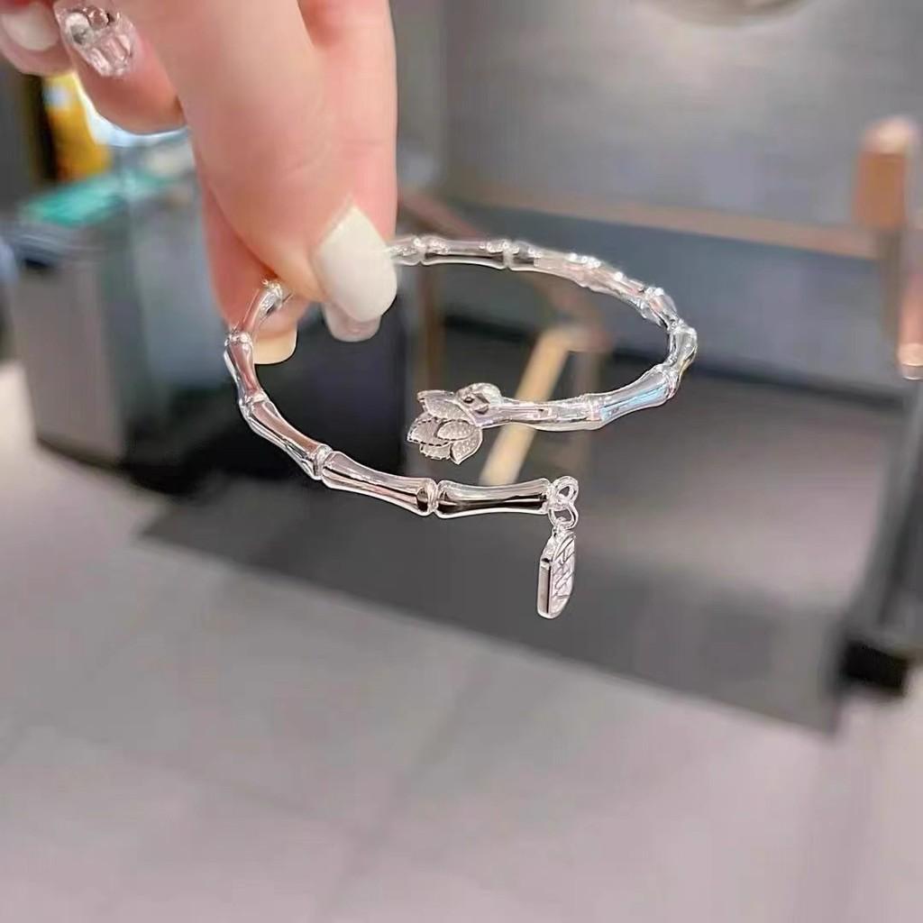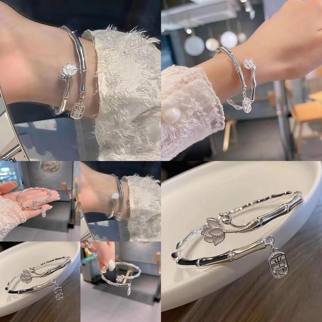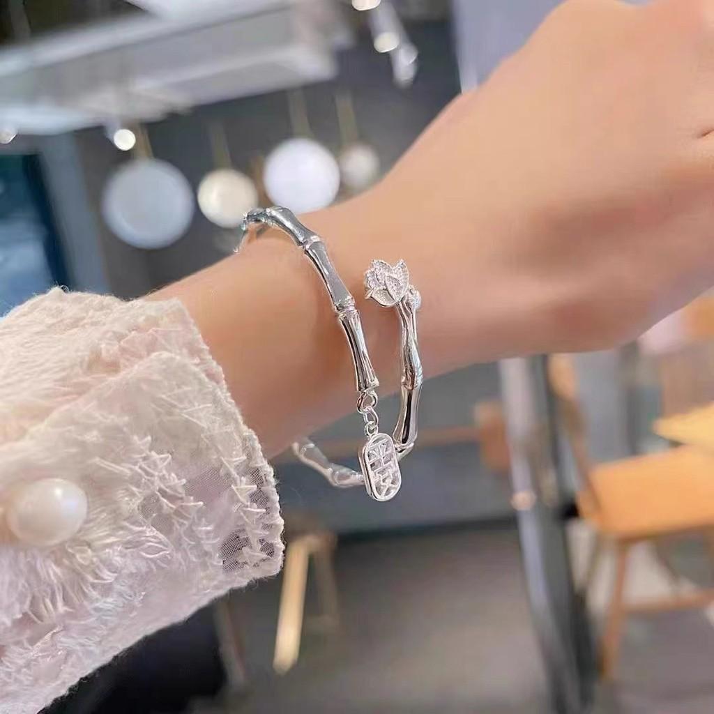 Модный геометрический браслет-манжета из бамбука с лотосом, шикарный браслет из сплава, женское украшение, подарок