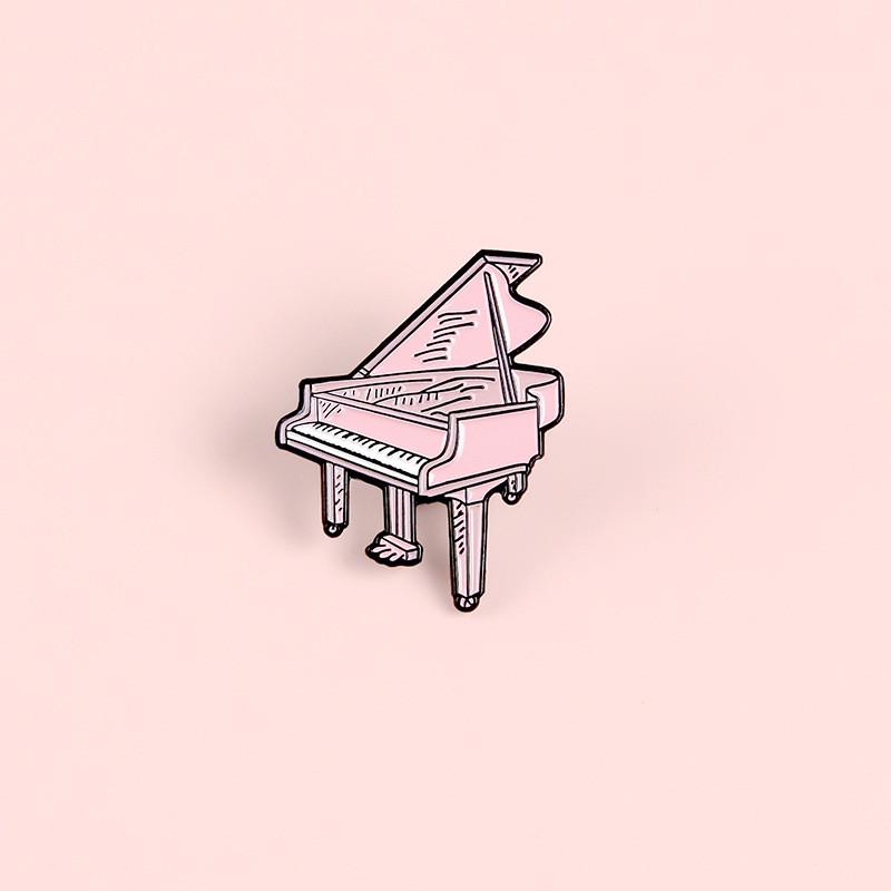 Stylish Cartoon Pink Piano Brooch Decorative Alloy Badge For Fashionable Outfits